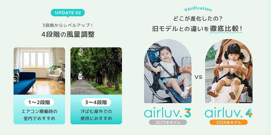 パワーが強いモードが増えたので、4は真夏の屋外でもより快適に過ごせます。