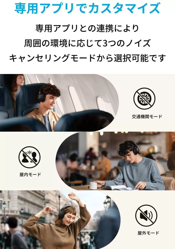 Q30を選ぶメリットは、ノイズキャンセリングのモードが選べることです。