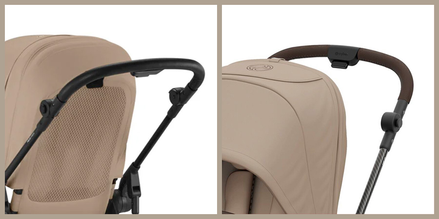 ハンドルの色は、サイベックスはブラックですが、アカチャンホンポはブラウンでデザインされています。