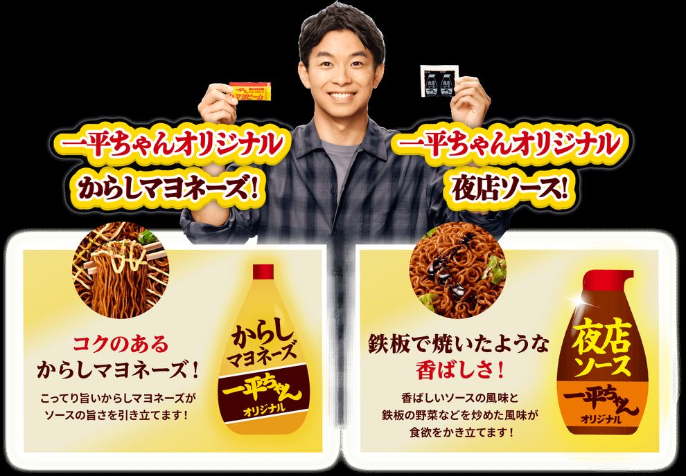 一平ちゃんはマヨネーズがついており、ソースとマヨネーズが組み合わさった焼きそばが食べられます。