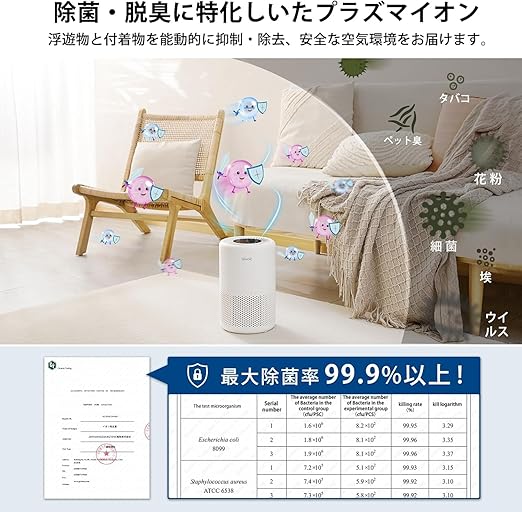 また、プラズマイオンの機能があり、プラズマイオンによって空気中のウイルスや微生物、アレルゲンなどを抑制してくれることが可能です。