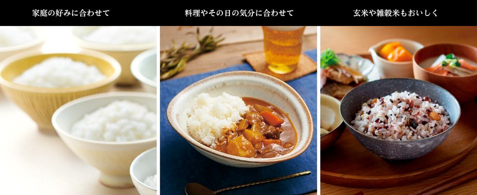 また、炊飯メニューの数が多かったり、わが家炊きで変化するご飯の食感の種類が多くなっているなど、より自分の好みのご飯を炊けます。
