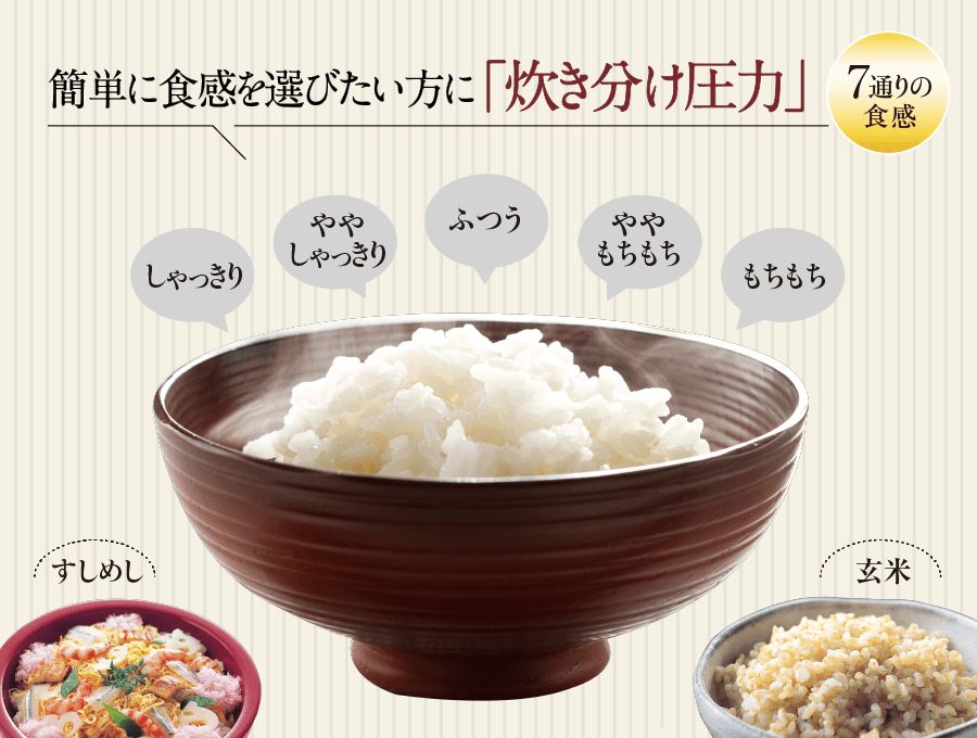 | 白米炊き分け | 5通り | ふつう、しゃっきり | |