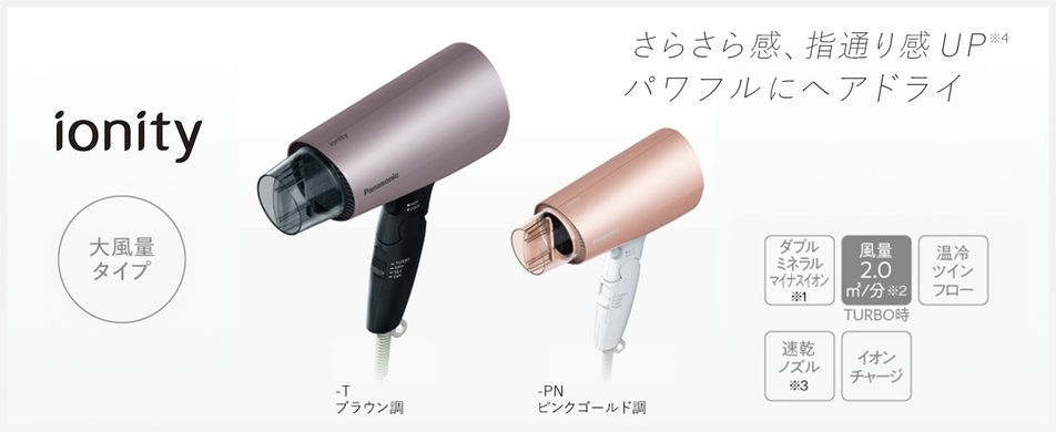 パナソニックから発売しているドライヤーでは、単に髪を乾かすだけでなく、マイナスイオン効果を髪に与えてくれるものもあります。