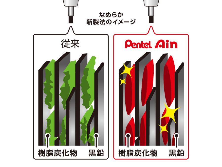 製造工程において特殊オイルを使用することによって、従来品よりも芯の滑らかさがアップしています。
