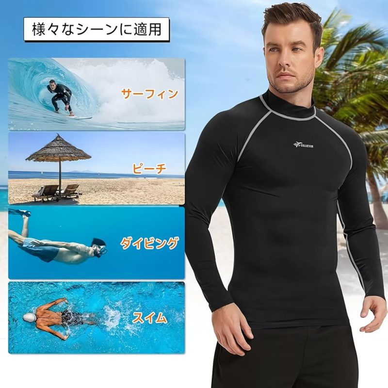 サーフィンやダイビングなどマリンスポーツ時の紫外線が気になる人は、ラッシュガードがおすすめです。