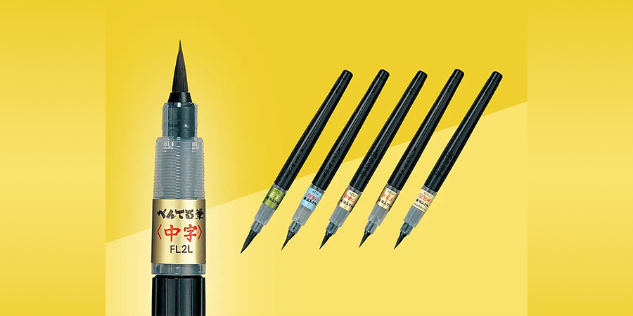 ぺんてる筆は中字を「標準」として販売しているので、公式に掲載されている動画などの作品例は、中字を使用している場合が多いです。