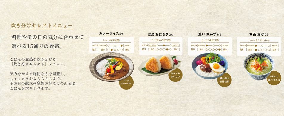 NX-AA18は15通りの炊き分けができ、NW-NB18では5通りに炊き分けが可能です。