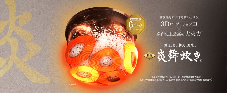 炎舞炊きの炊飯器には、複数のIHヒーターが内蔵しており、効率的にお米に熱を加えられます。